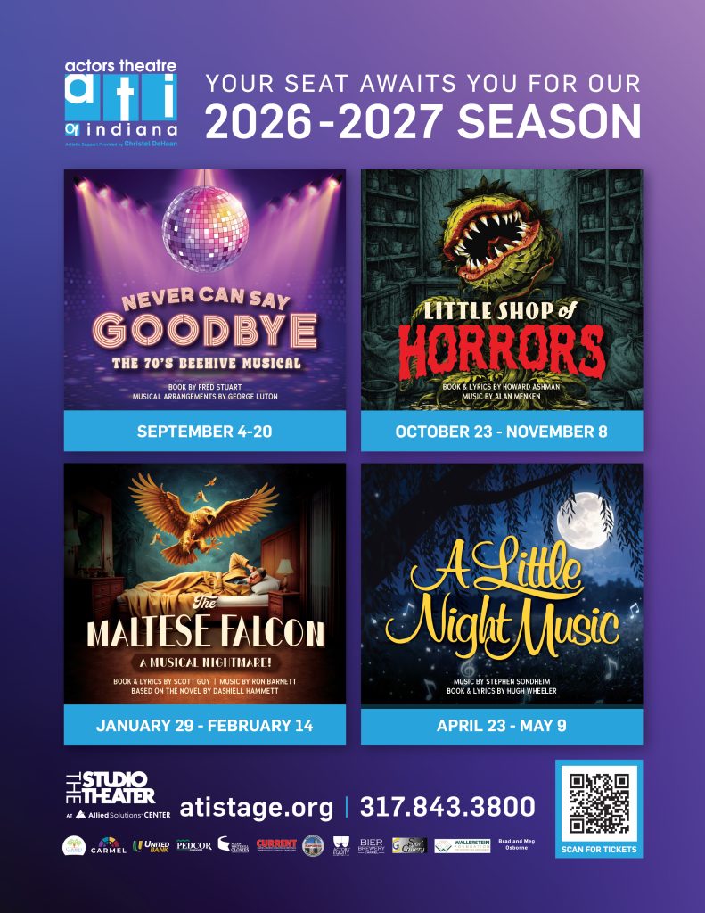 Get your season subscriptions now! They will sell out fast with the fantastic shows we’re bringing to you next season! Get your subscriptions by calling the Allied Solutions Center for the Performing Arts box office at 317-843-3800!